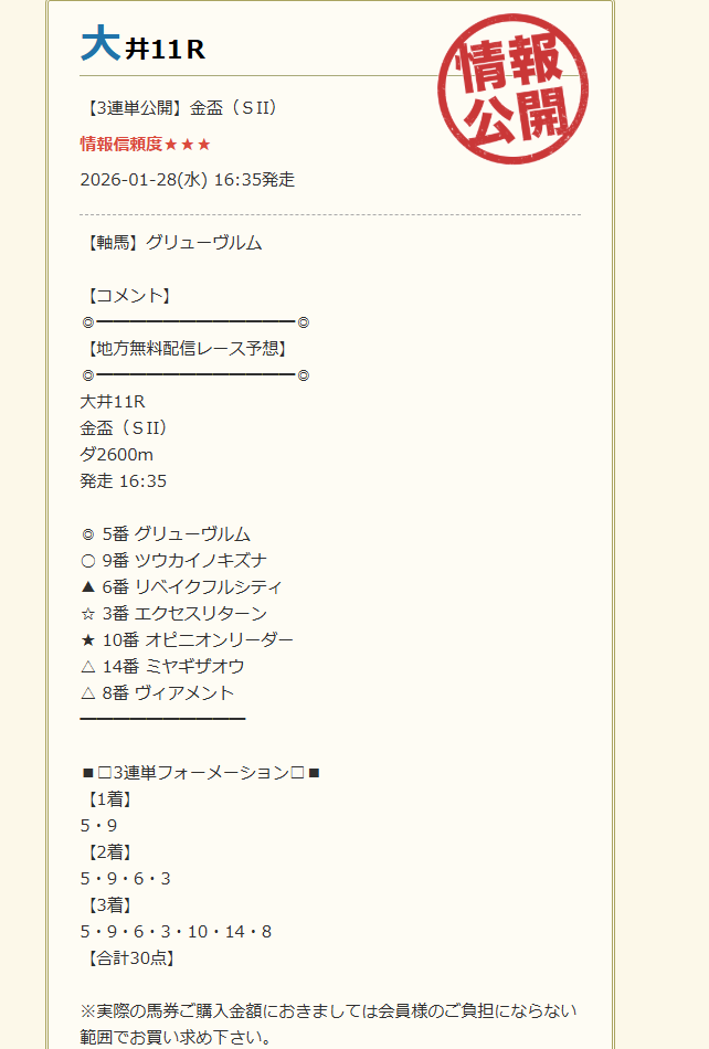 無料予想で三連単的中!