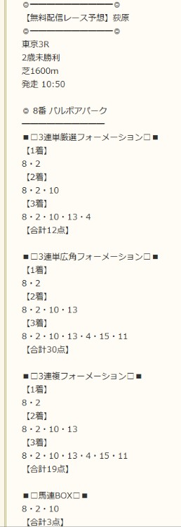 3連休2日目の午前中の東京3R無料予想で