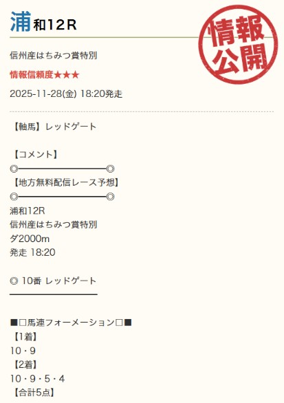 11月最後の地方競馬無料予想で