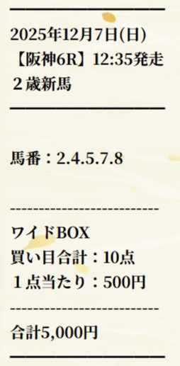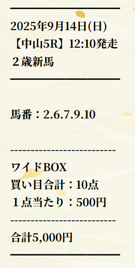 馬券代は1点500円の総額5000円