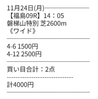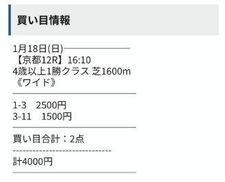 馬券代総額は4000円で財布を痛める事のない優しい支出総額