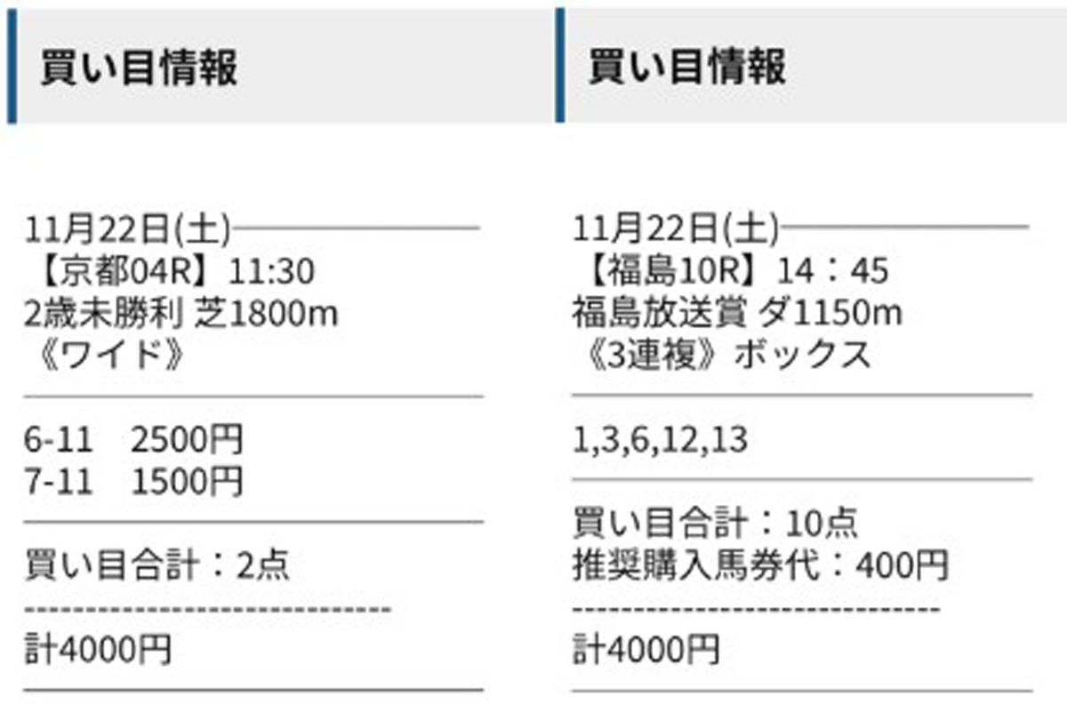 とお薦めされたこの予想サイトの無料予想で買い目点数2点でワイド2種どちらも的中